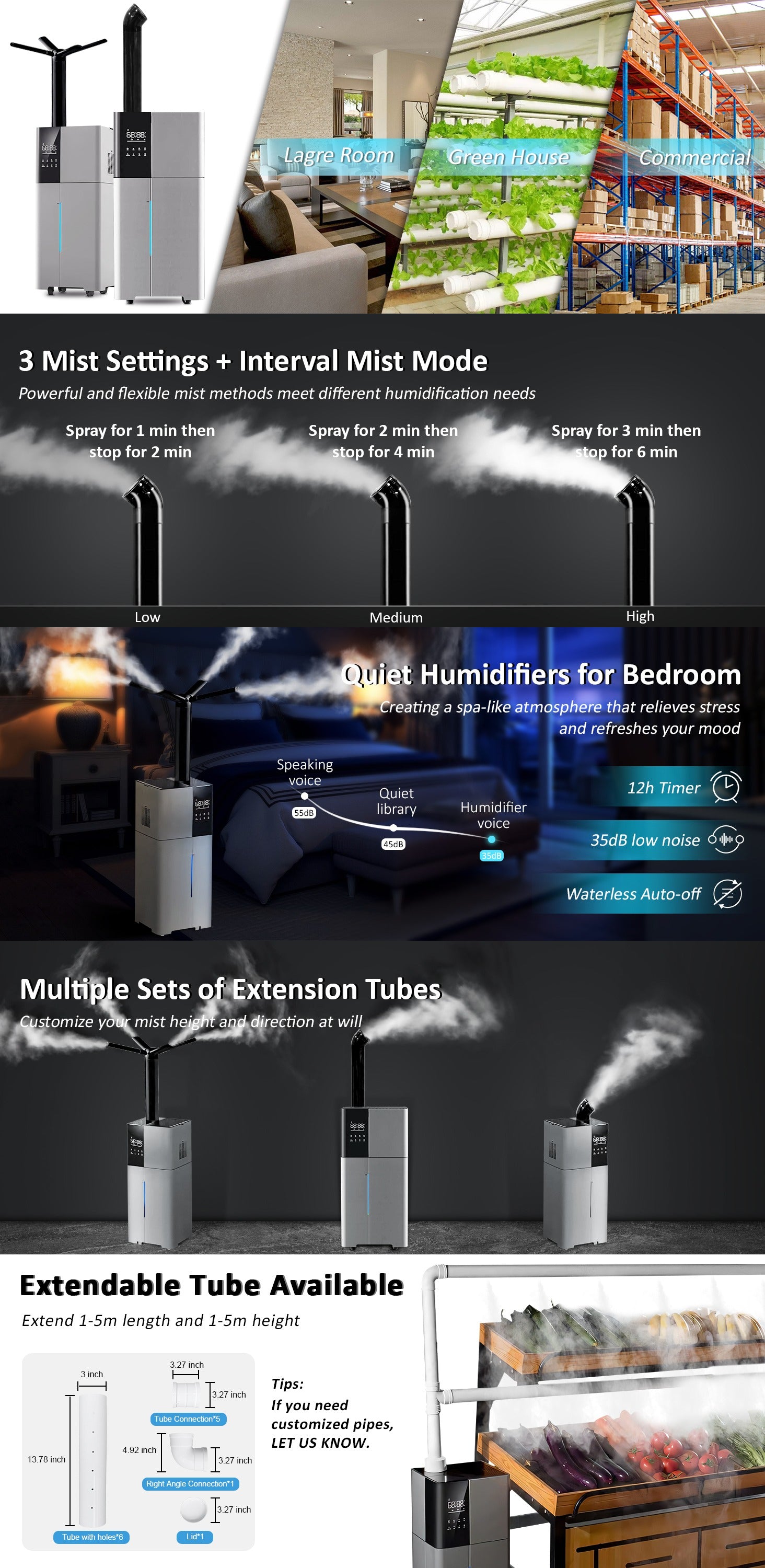 - 360° Mist Coverage & Extended Tube Comes with an adjustable 360° rotating nozzle and extended mist tube—perfect for directing moisture where needed, especially for plant care. Equipped with 4 caster wheels for easy mobility.