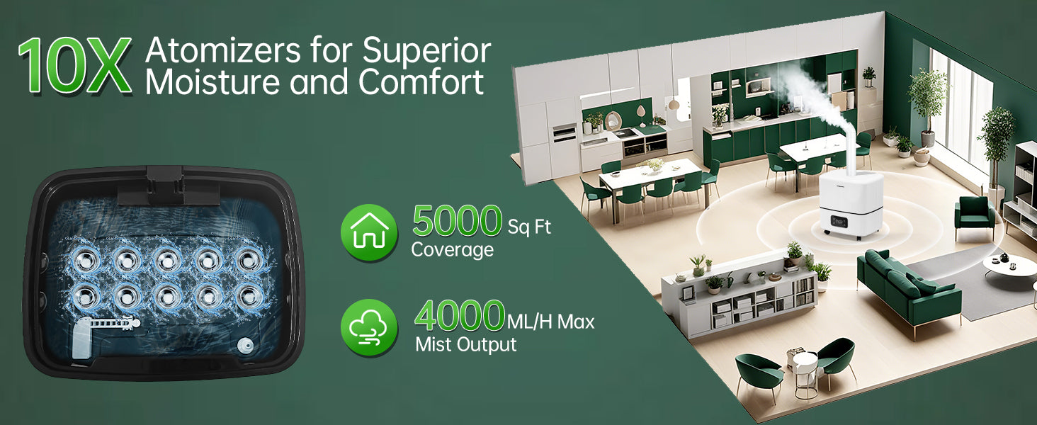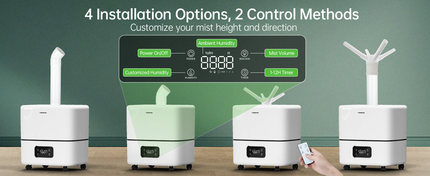 Precise Digital Humidity Control Customizable humidity levels with an accurate external sensor that automatically adjusts mist output to maintain your target humidity.