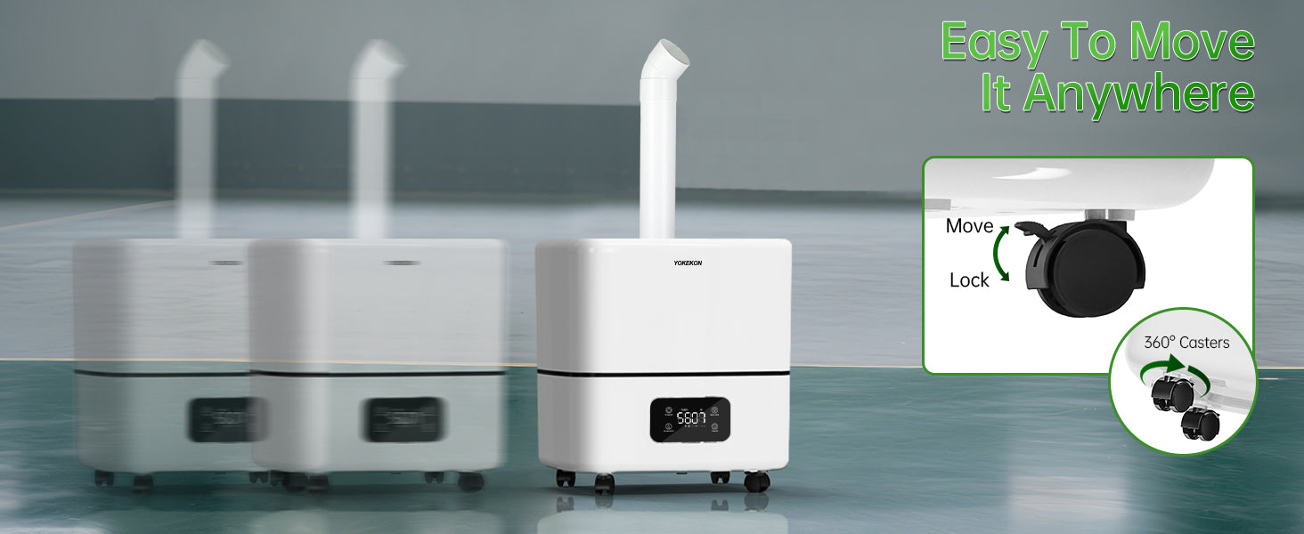 High-Efficiency Commercial Humidifier Equipped with multiple stainless steel atomizers for powerful mist output, ideal for rapidly humidifying large spaces such as warehouses, greenhouses, and offices.